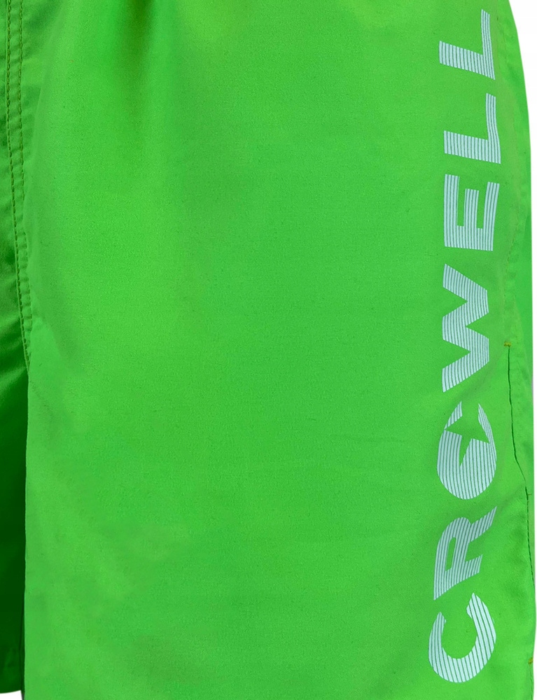 Комфортні шорти пляжного одягу Crowell у неоново-зеленій версії, доповнені великим трафаретним логотипом, стануть ідеальним доповненням до вашого літнього стилю.