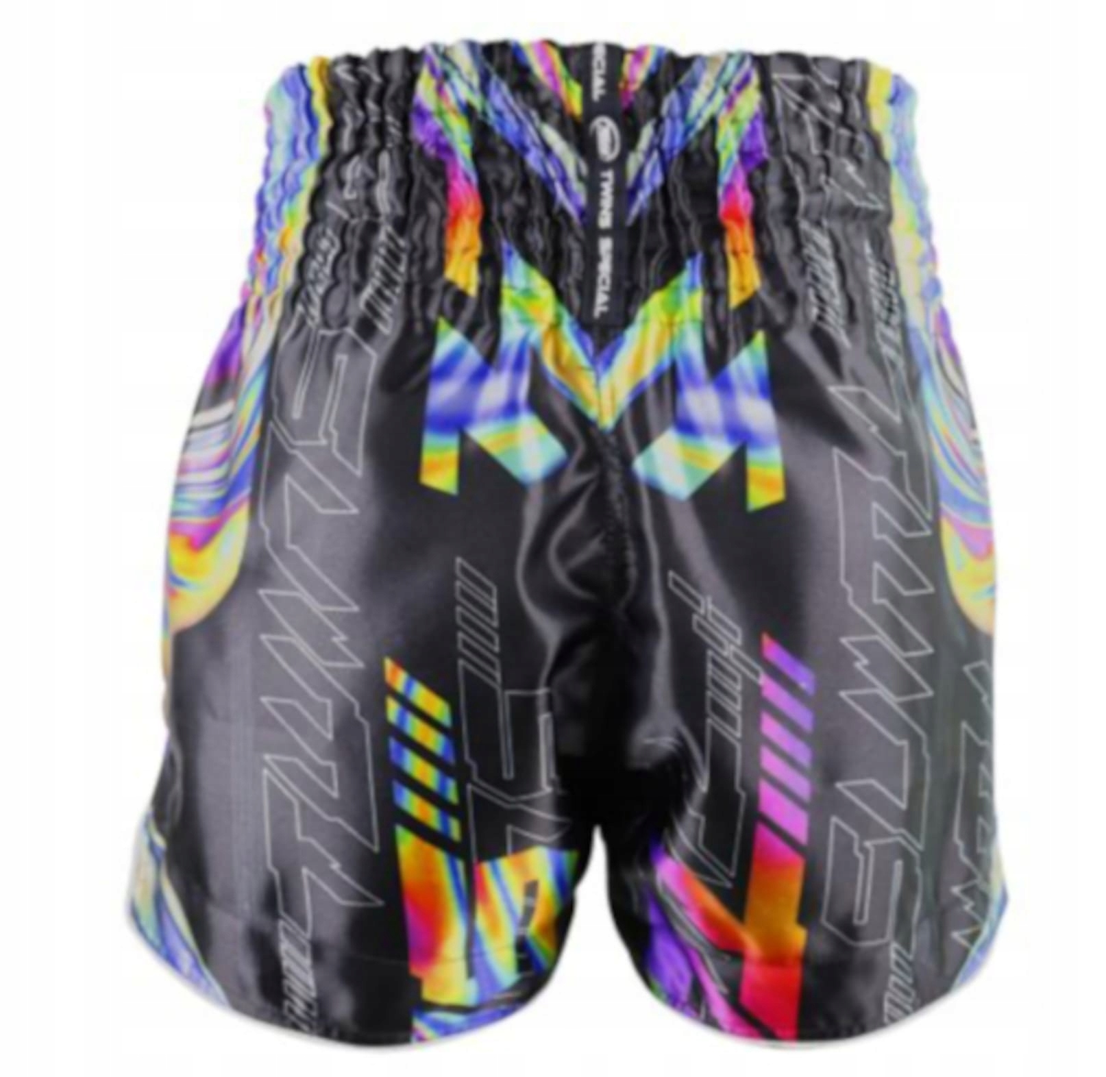 Ми представляємо шорти для тайського боксу відмінної якості від Twins Special, виготовлені зі 100% поліестеру, що дозволяє ідеально відводити вологу, що утворюється під час тренувань від поту. Використаний матеріал гарантує не тільки довговічність, але й гігієнічність. Нижня білизна для спортсменів найчастіше виготовляється з поліестеру. Спеціальний розширений крій забезпечує максимальний комфорт тренувань, що важливо в тих видах спорту, де використання ударів ногами і коліном є чимось природним. Цей тип шортів використовується у всьому світі, як професіоналами, так і любителями тайського боксу та інших єдиноборств.