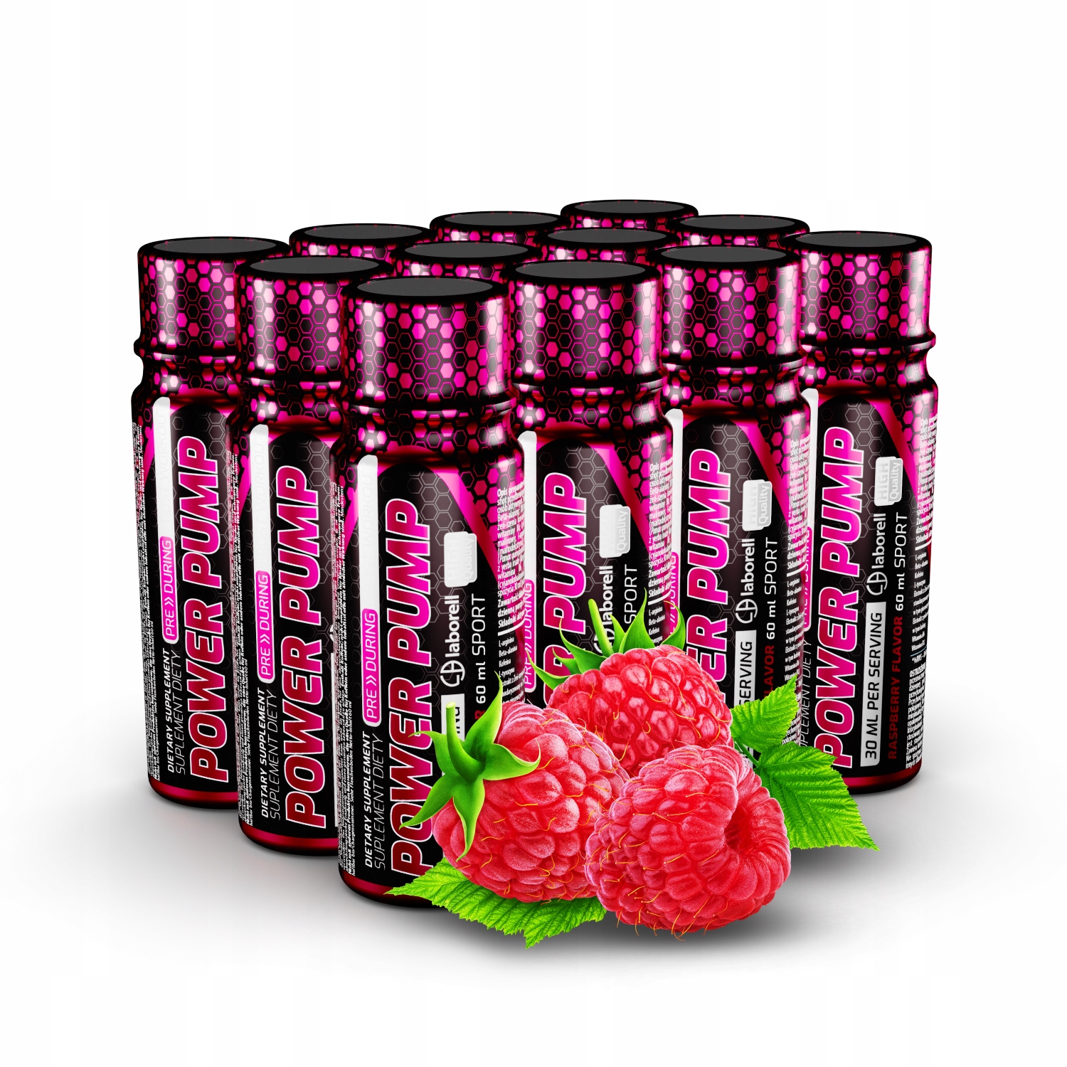 SHOT 60ml 12 szt PRZEDTRENINGÓWKA SIŁA MALINA PRZED TRENINGIEM Laborell