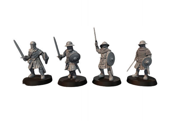 Шотландці 14-го століття з мечем і щитом - 4x - Сервісні фігурки для 3D-друку для рольових або бойових ігор