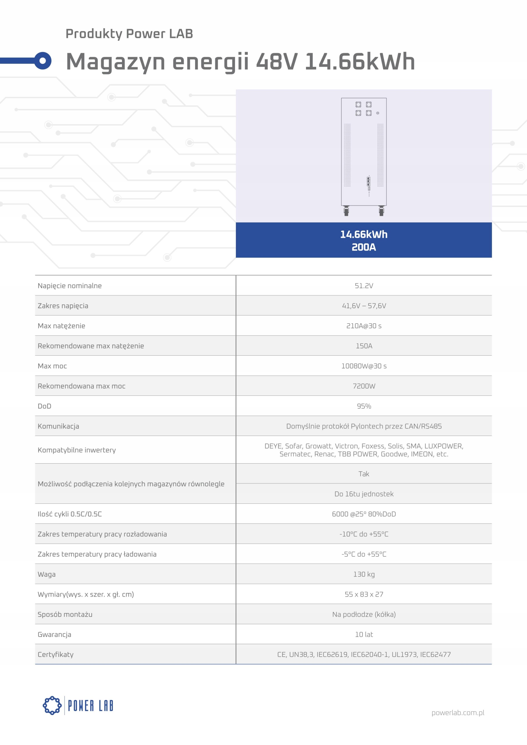 Power LAB Energy Storage 15,5 кВт/год 48 В 200 A