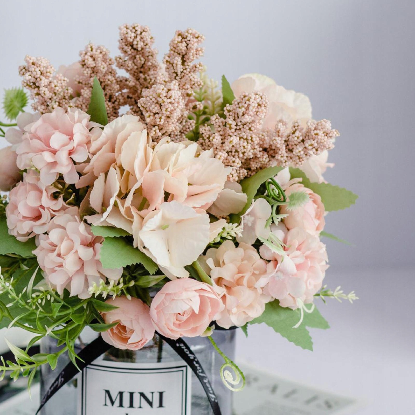 Шовкова гортензія, штучний квітковий букет, квітковий бонсай для кімнатного рожевого кольору