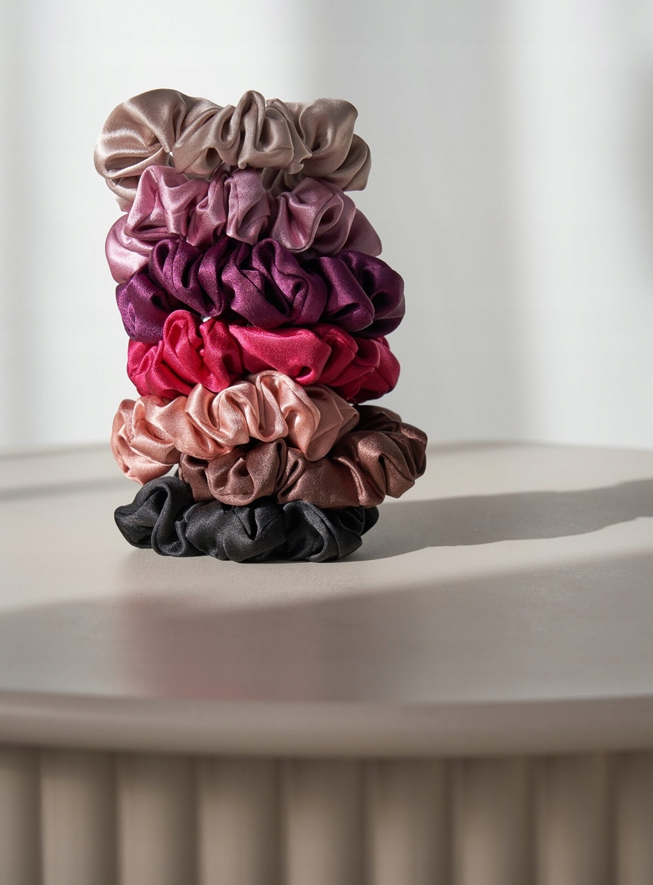 Наші шовкові гумки для волосся надзвичайно ніжні до волосся та задовольнять смаки навіть найвибагливіших клієнтів. Виготовлені зі 100% тутового шовку, вони ідеально підходять для повсякденного носіння та сну, захищаючи ваше волосся від ламкості, кучерявості та синців.
