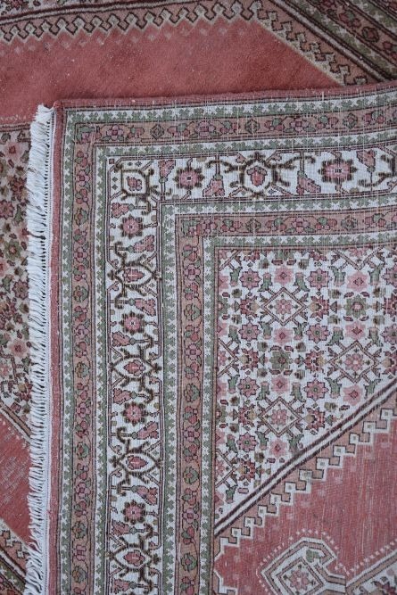 На наступному аукціоні я повинен запропонувати вам справжній, вручну, витканий з натурального шовку на бавовні, кашмірський вінтажний килим. > У хорошому стані - як на фотографії, він має потертості в цілому. Ціна. для мого власного комфорту я рекомендую оновити - привабливу ціну.
