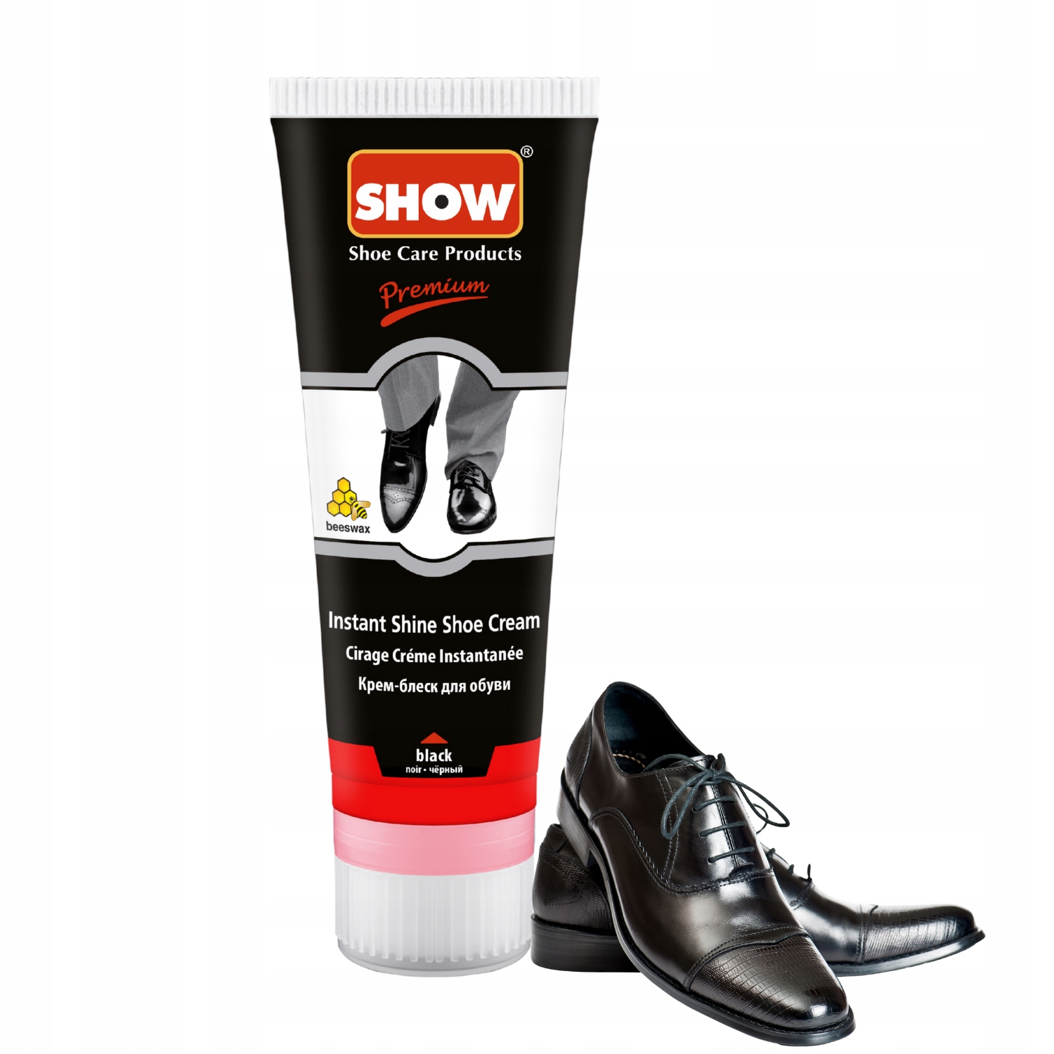 Виготовлений шляхом мікронізації імпортних натуральних восків крем SHOW® є перевіреним методом швидкого та ефективного догляду за взуттям. Натуральні воски, що містяться у формулі, живлять шкіру, дозволяють їй дихати та продовжують термін служби взуття. Функція миттєвого полірування повертає їм свіжість і первозданний блиск.