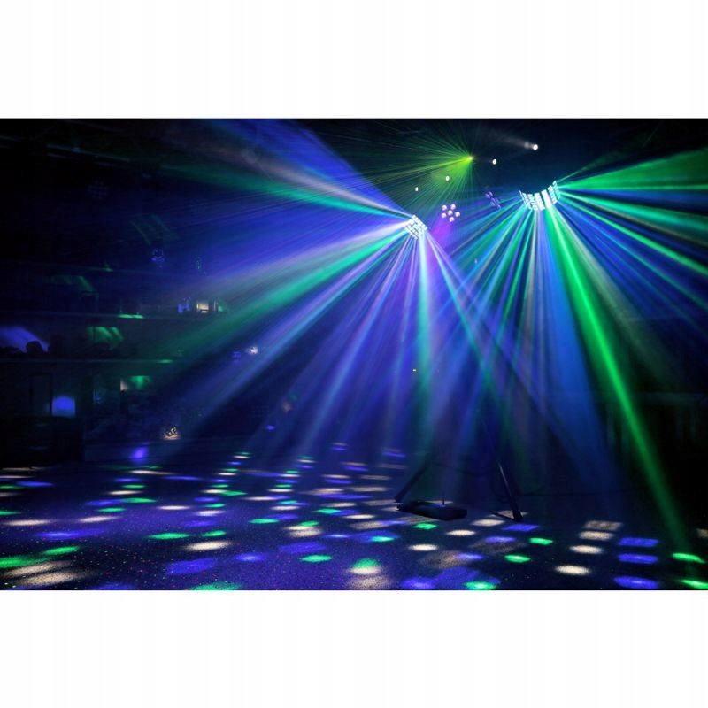 - Два великі світлодіодні ефекти Butterfly LED з 48 лінзами та 4x 3W RGBW Світлодіоди для ефекту