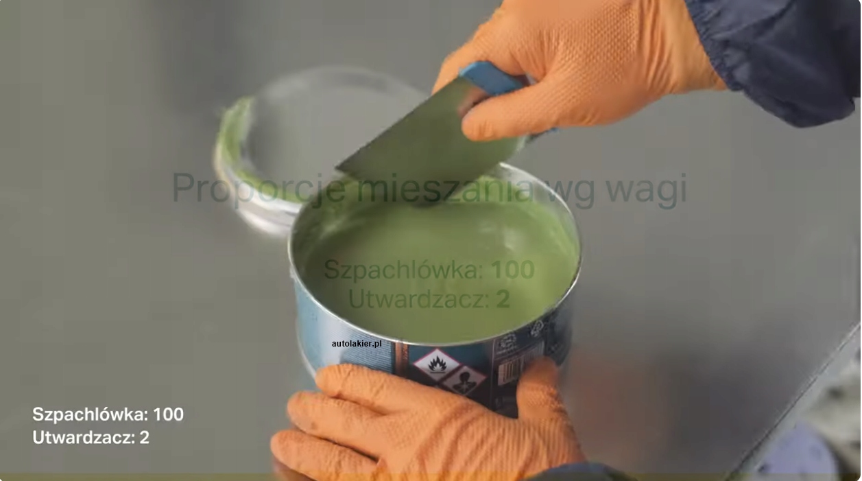 На підготовлену таким чином поверхню нанесіть ретельно перемішані інгредієнти шпаклівки (дотримуйтеся пропорції змішування) і нанесіть шар шпаклівки товщиною не більше 3 мм.