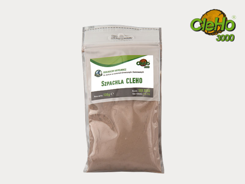 Упаковка та кольори:Шпаклівка CLEHO доступна в зручній багаторазово відкриваючій упаковці по 130 г у 8 основних кольорах. які можна змішувати один з одним. Це: біла, сосна, бук, вишня, дуб сучок, груша, горіх, чорний.