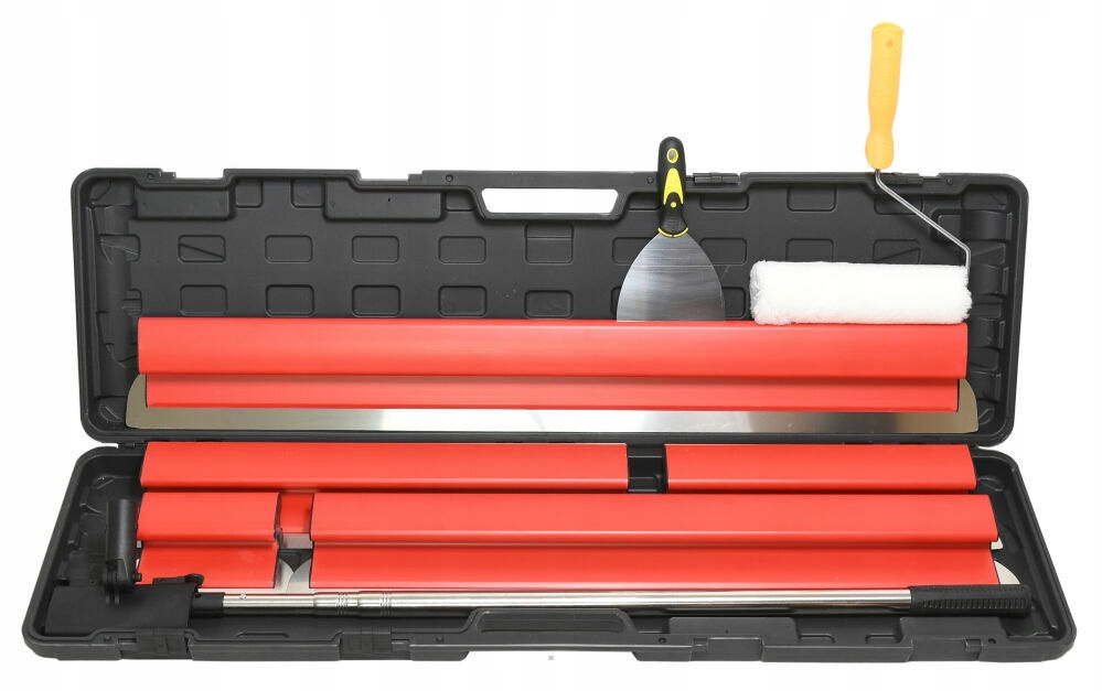 Все це упаковано в практичну валізу, що забезпечує практичне перенесення інструментів і захищає шпаклівку від механічних пошкоджень.