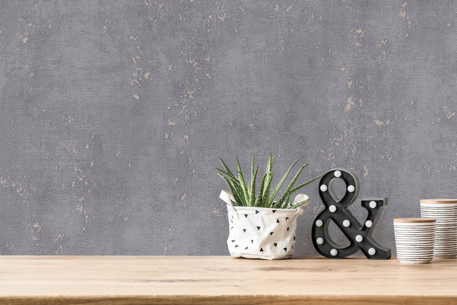 - Опис візерунка: візерунок, що імітує бетон сірого відтінку з ледь помітними мерехтливими відблисками мідного відтінку