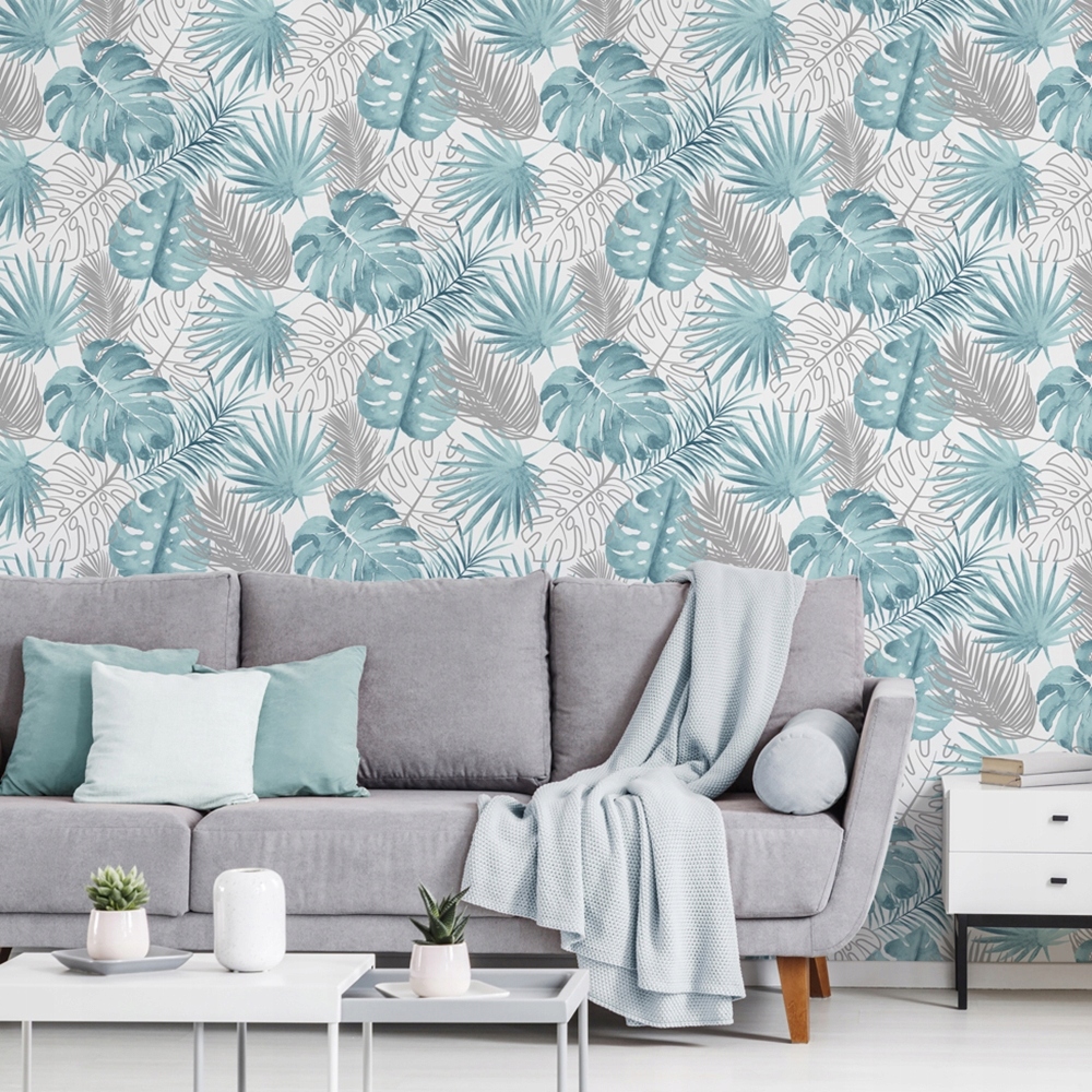 - Візерунок: розписане вручну екзотичне листя, монстера та пальма. Тропічні мотиви дуже модні, ідеально підходять для відображення на акцентній стіні.