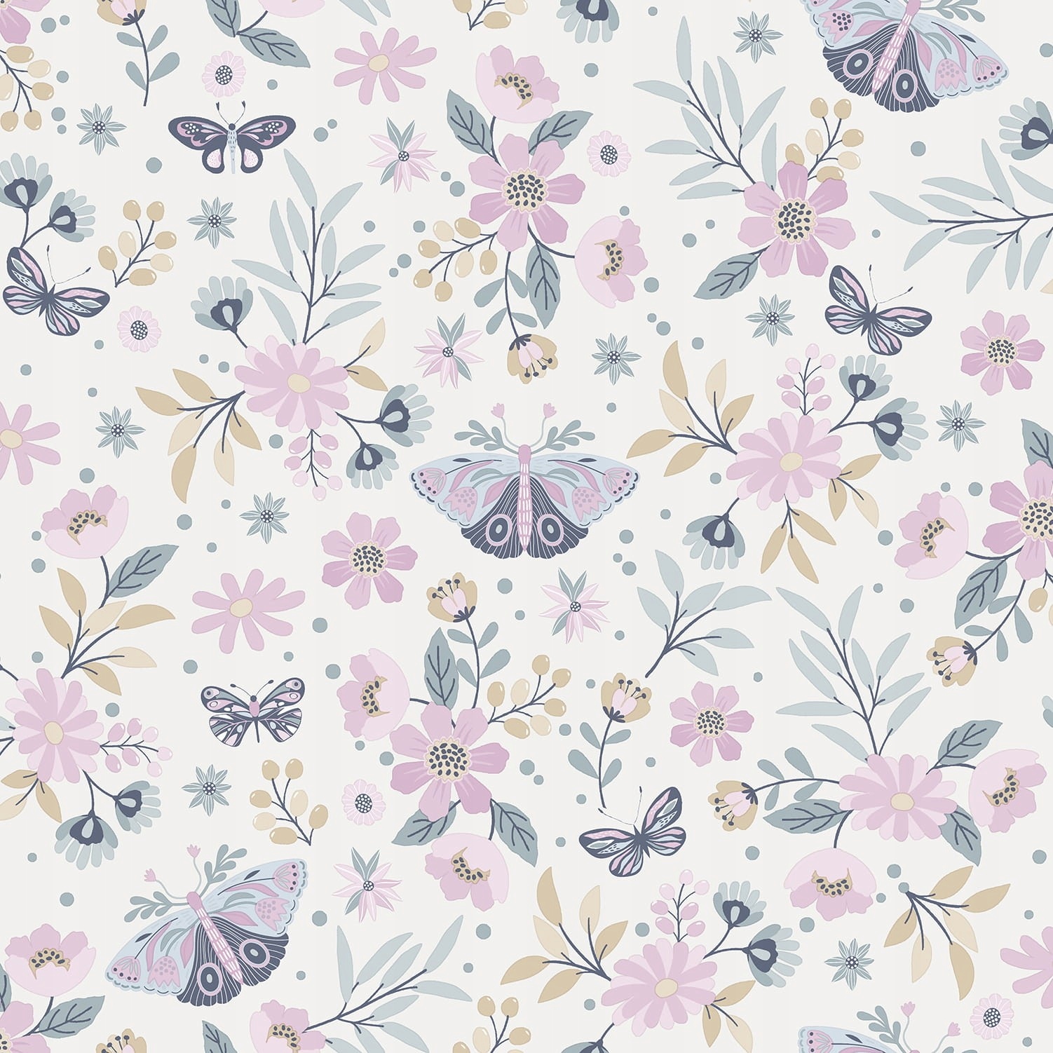 Дитячі шпалери з рожевими метеликами та квітами