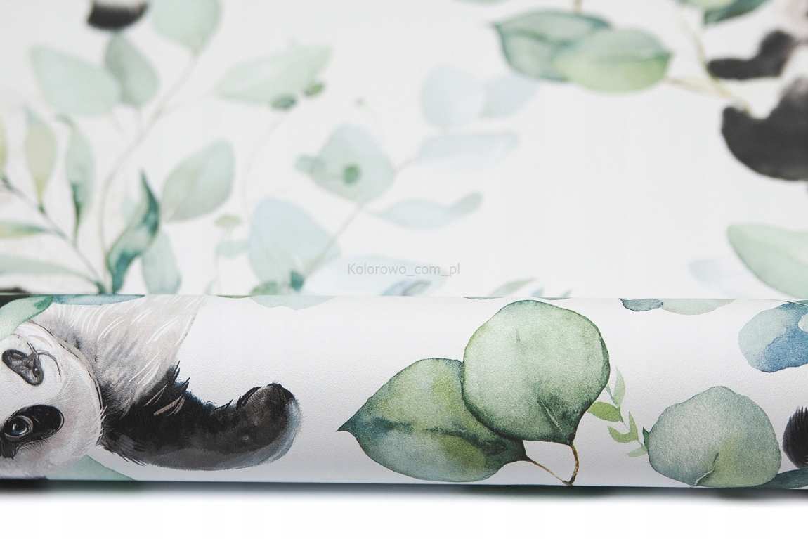 Шпалери для дитячої кімнати Панда і евкаліпт