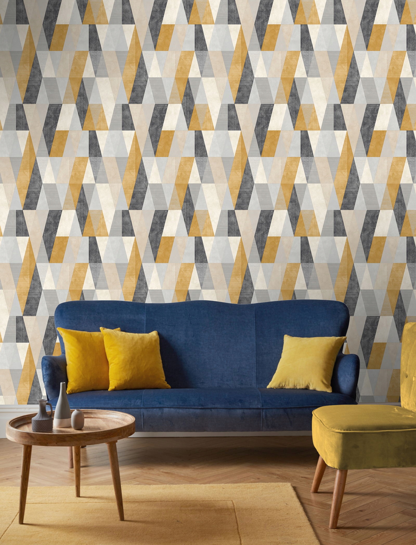 Шпалери ГЕОМЕТРИЧНИЙ УЗОР ТРИКУТНИКИ ПАПЕРОВИЙ РОМБ