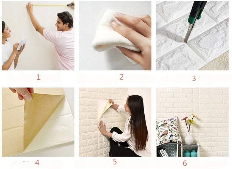 Панелі гнучкі та легко пристосовуються до нерівностей основи.Можна замінити традиційні шпалери, клеїтися на вагонку, плитку, плитку тощо.