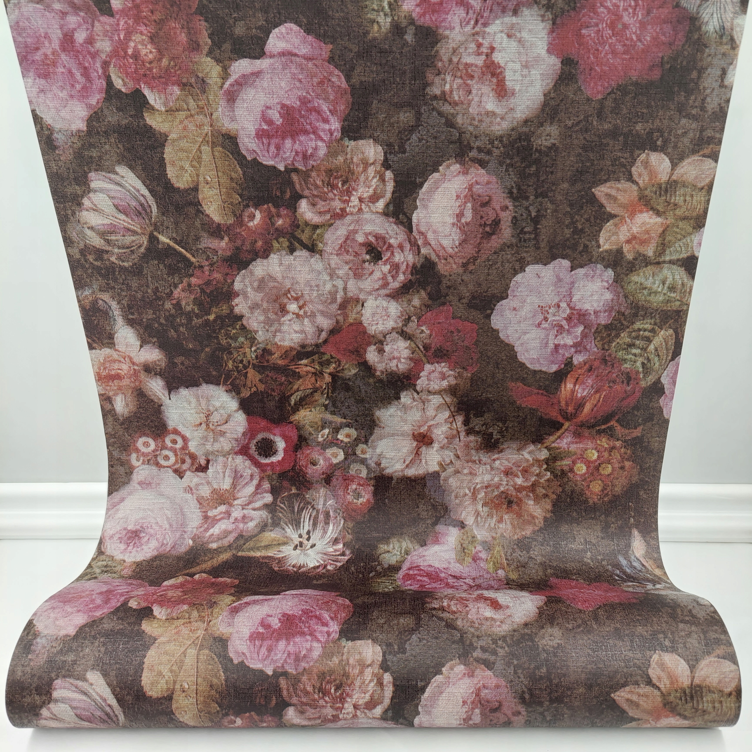 Сучасні шпалери із зображенням різнокольорових бутонів півоній, намальованих немов на полотні, виглядають дуже природно.