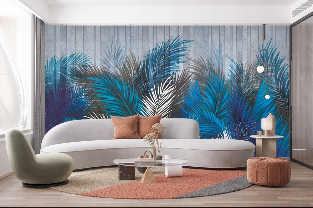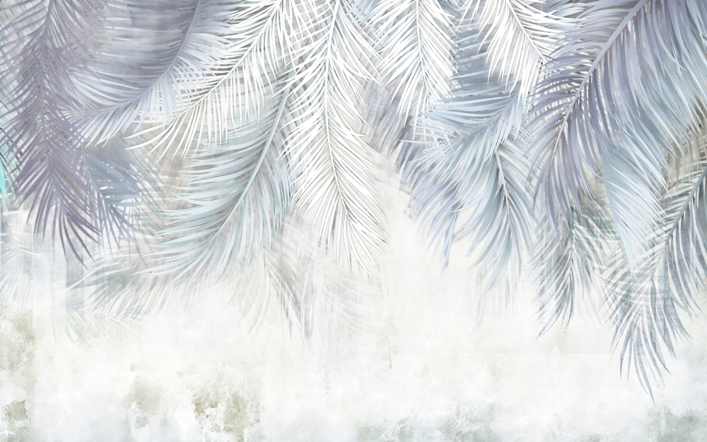 ШПАЛЕРИ ПІР'Я КВІТКИ ПАЛЬМОВЕ ЛИСТЯ ВЗІРУНКИ ДЖУНГЛІ #