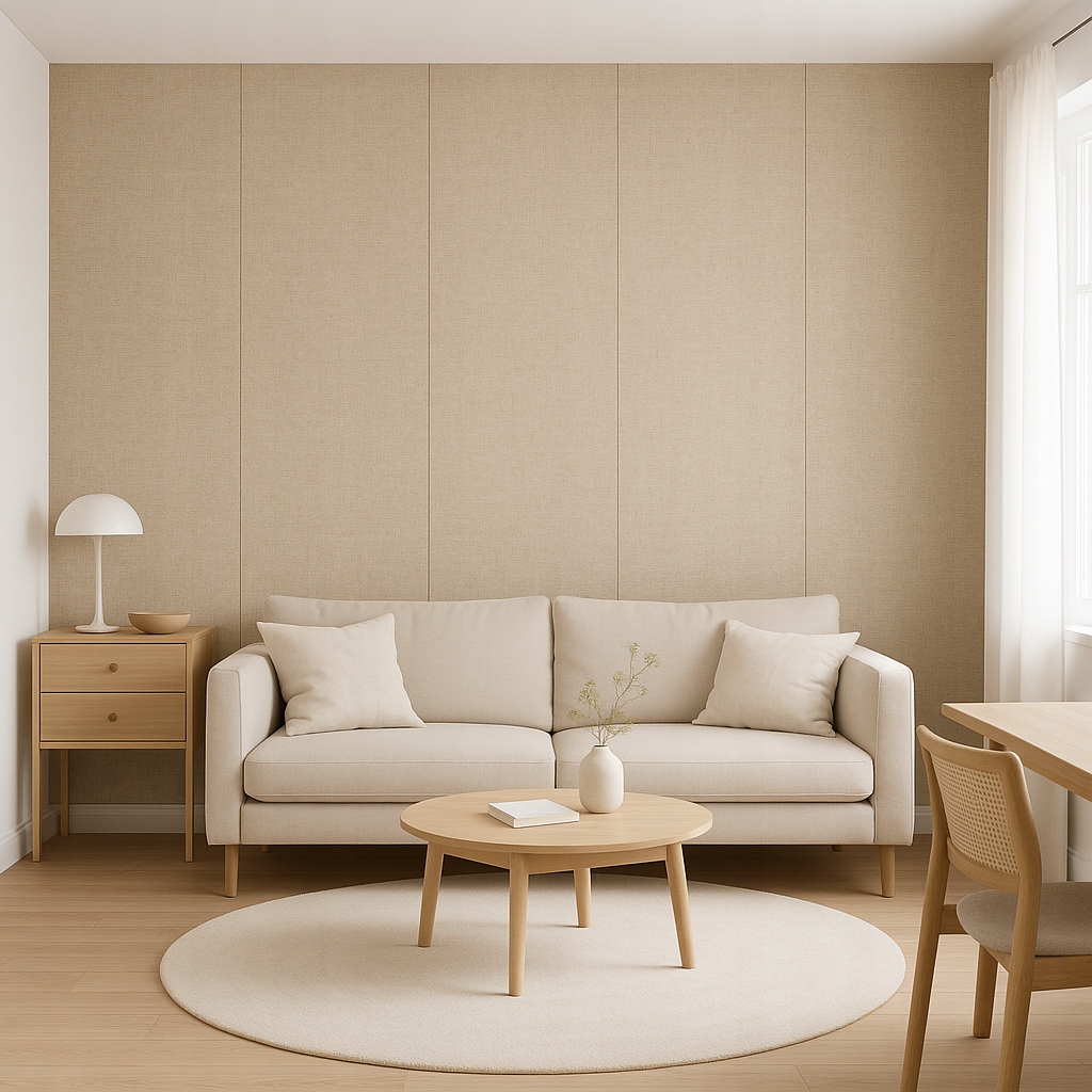 Змініть свій інтер'єр швидко! Матеріальні шпалери в рулоні - це поєднання елегантного зовнішнього вигляду, міцної конструкції та простоти монтажу. Завдяки багатошаровій структурі та естетичній обробці дозволяє створити сучасний, стильний простір без трудомістких ремонтних робіт.