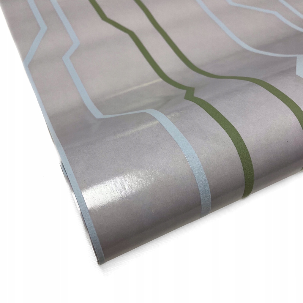 ШПАЛЕРИ ВІНІЛОВІ НА НЕПОЛЕВУ СІРУЮ ГЕОМЕТРИЧНУ СМУЖКУ ЗЕЛЕНИЙ СИНІЙ 64432