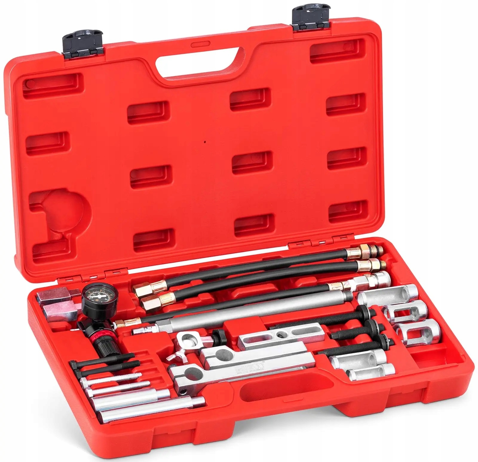 Тиск у циліндрі буде задано за допомогою відповідного адаптера. Під час цього процесу клапан -це від реверсування, що не тільки значно полегшує роботу, але й дозволяє легко замінити глибокі клапани ворота. Практична особливість пружин клапана полягає в тому, що головка циліндра не повинна бути спеціально видалена. Набір інструментів також буде працювати в тісних просторах.
