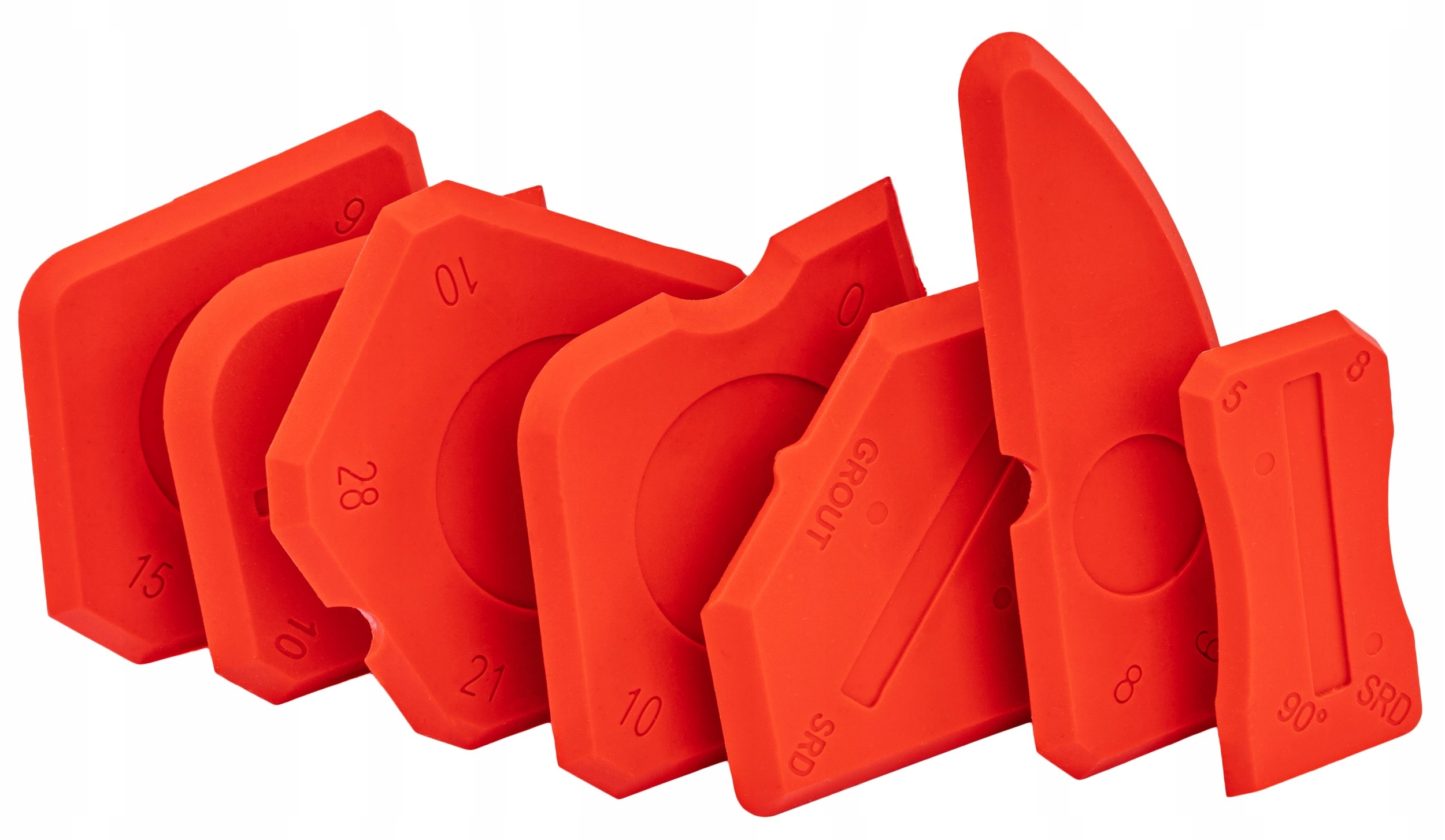 Набір червоної техніки - це набір інструментів для точного згладжування силікону, суглобів та акрилу - 7 профілів, шпателя, скрепер та поради щодо застосування. Зроблені з міцного, гнучкого пластику, вони не малюють поверхонь і їх легко очистити. Ергономічна форма забезпечує зручність та точність роботи, гарантуючи професійну обробку кожного зварювання.