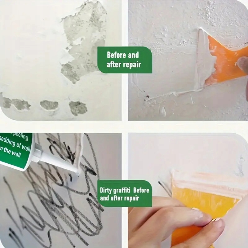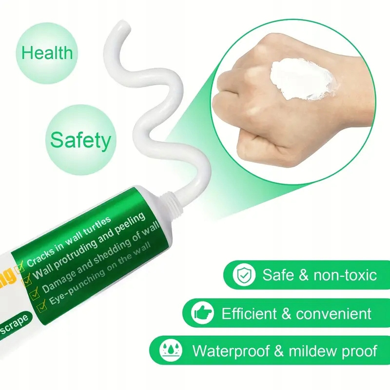 ✔️ Працює з тріщинами, дірками від цвяхів, графіті, плямами та навіть подряпинами, що робить його універсальним рішенням для ремонту стін.