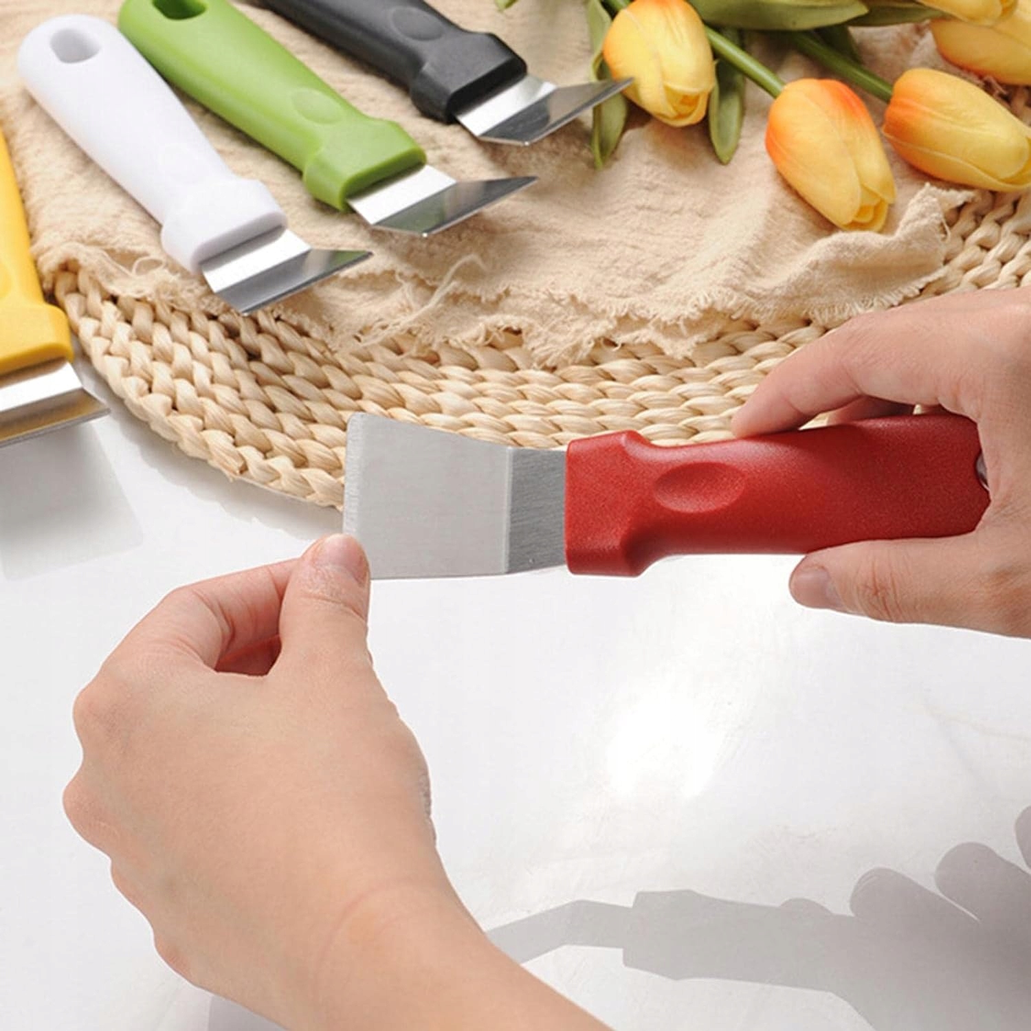 - Багатофункціональний скребок Кухонний скребок може видалити товстий шар морозильного льоду, також підходить для чищення плит, вікон, скла, тарілок для випічки та підносів тощо. Ви також можете видалити залишки клею з наклейок.