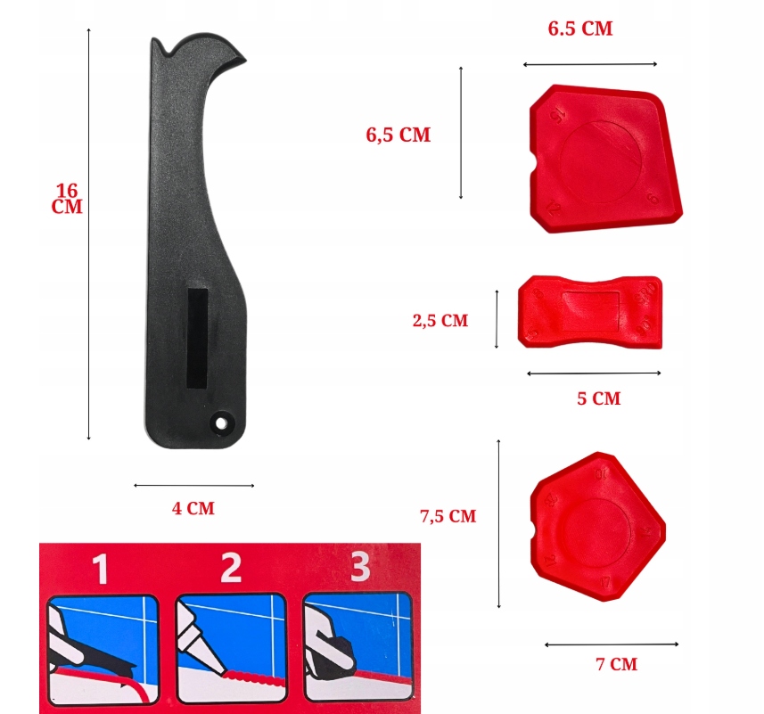 - Повний набір: 3 шпатеї різних форм для точного застосування силікону та ідеальної обробки зварних швів.