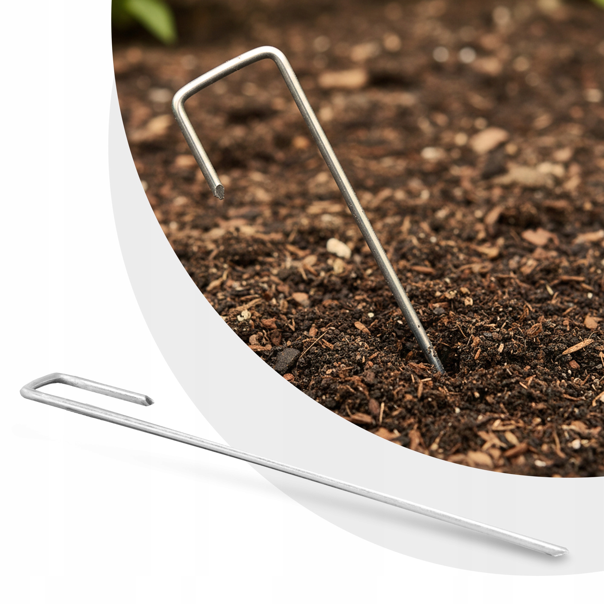 ✅ ЕФЕКТИВНА ФІКСАЦІЯ МАТЕРІАЛІВ – форма J добре підходить для кріплення таких матеріалів, як агротекстиль або агротекстиль. Вигнутий наконечник забезпечує більш надійне кріплення в землі, що підвищує стійкість кріплення та запобігає розносу матеріалу вітром.