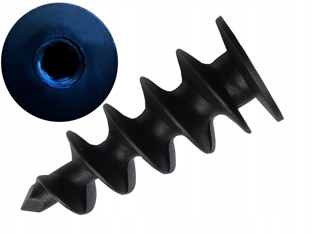 - спеціальна спіральна конструкція: конічна різьба забезпечує рівномірне розширення основи та безпроблемне загвинчування без свердління* в будь-який ізоляційний матеріал (від м’якого пінополістиролу, через мінеральну вату, до найтвердішого стиродуру); крім того, закруглені стінки спіралі не розрізають поверхню після монтажу (при боковому навантаженні),