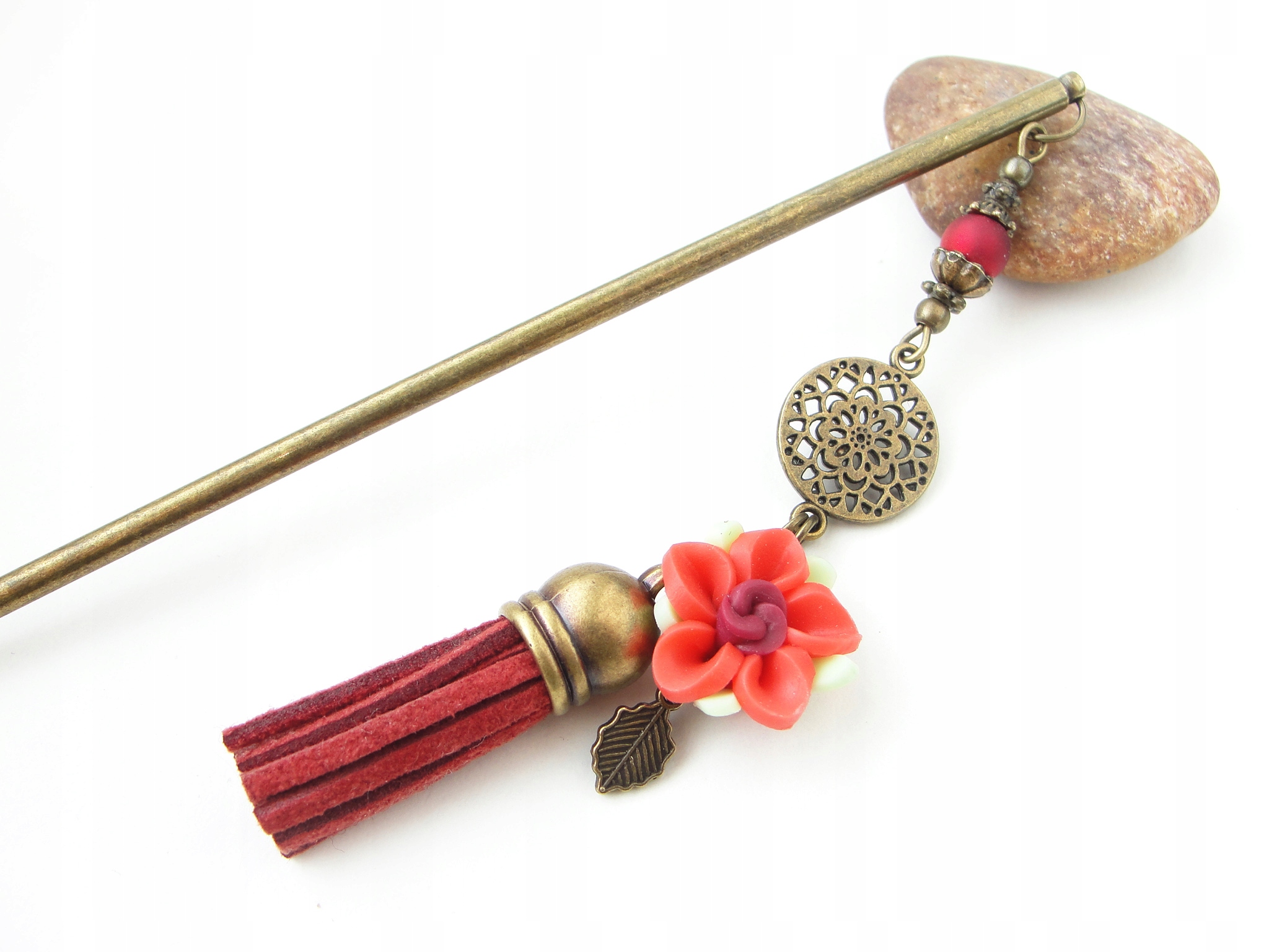 Шпилька для пучка - Червона квітка - довга підвіска