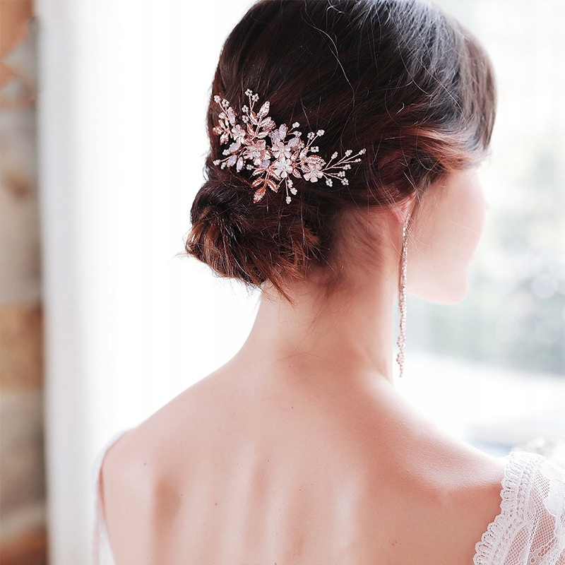Елегантний і стильний: ця заколка для волосся з рожевого золота має красивий квітковий дизайн, який додає елегантності та витонченості будь-якій зачісці. Складні деталі та блискучі стрази створюють вражаючий образ, ідеальний для особливих випадків.