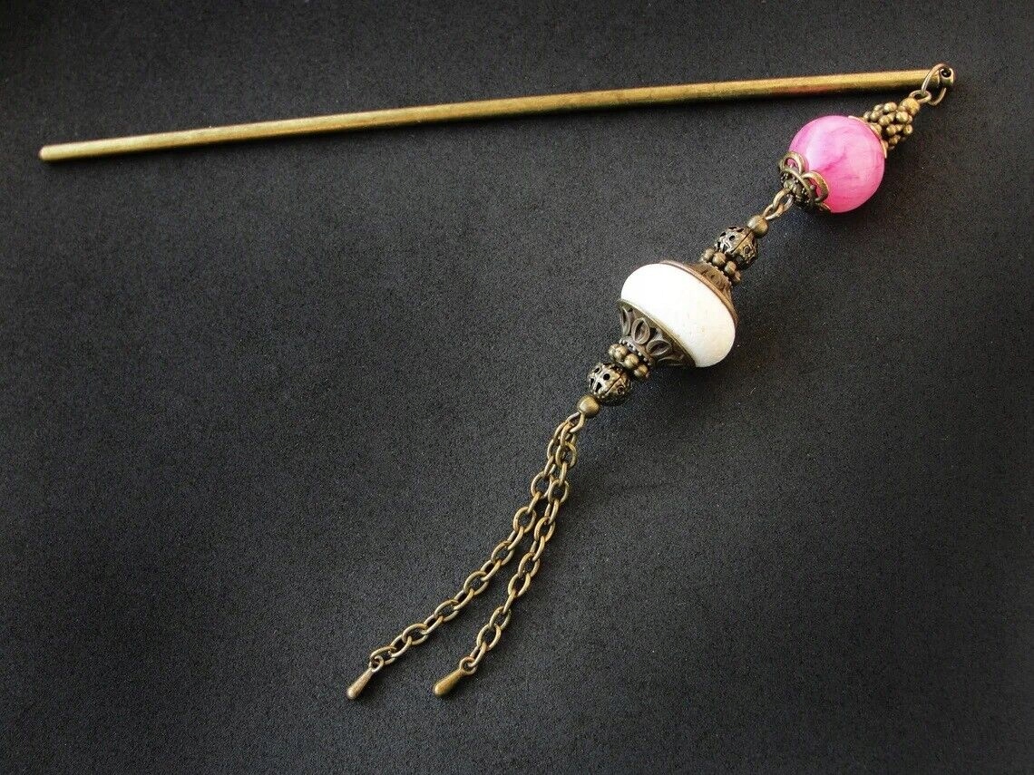 Шпилька і голка для пучка - білий корал і рожевий мармур