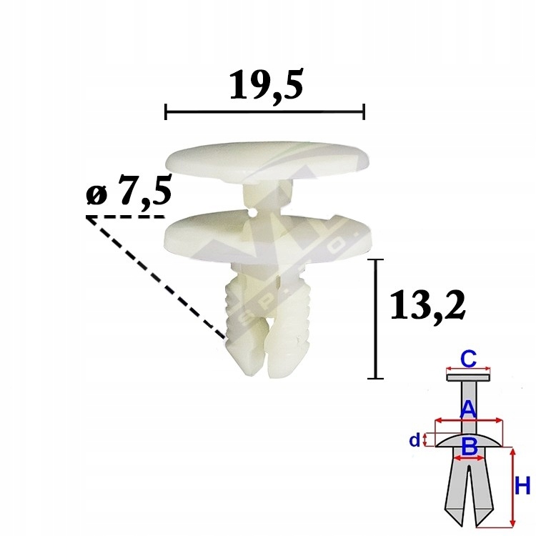 - w отвір ø 7,5