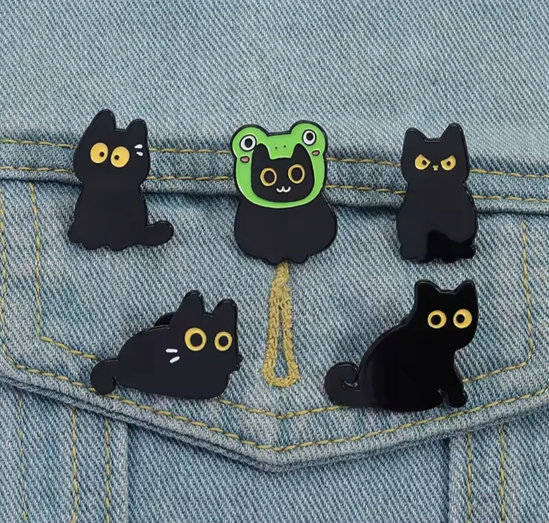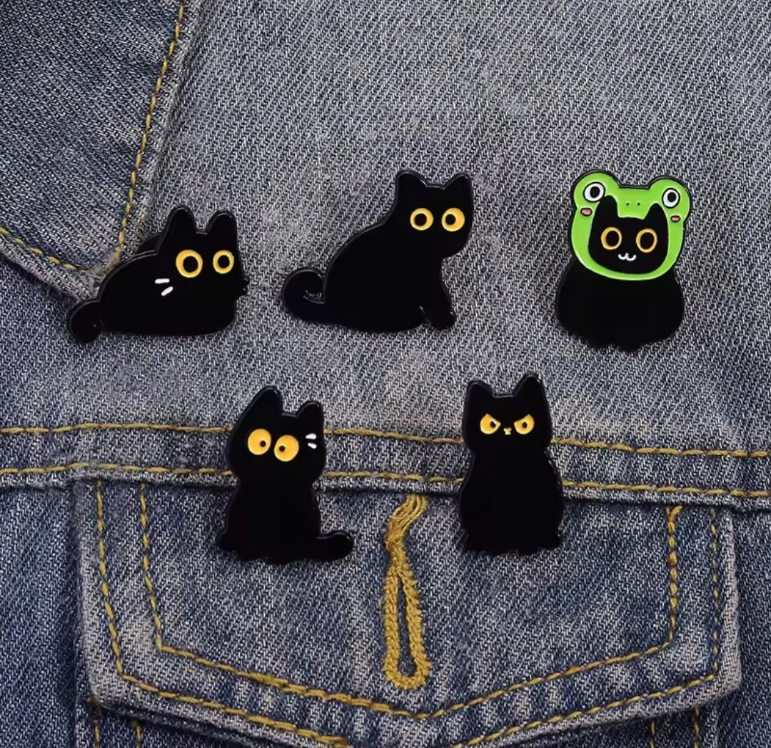 Шпилька Шпилька Рюкзак Шпилька для одягу - Чорний Кіт Кіт Жаба