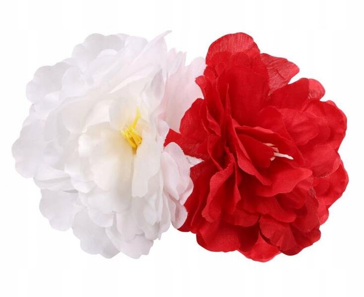ШПИЛЬКА ВЕЛИКА КВІТКА БІЛО-ЧЕРВОНІ КВІТИ НАЦІОНАЛЬНІ КОЛЬОРИ ВБОЛІВАЛЬНИК