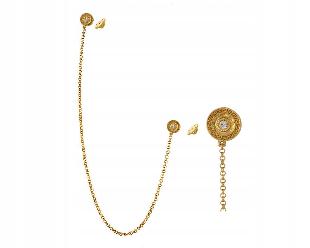 шпильки грецькі монети з кристалами precaios, з'єднаними ланцюгом. Діаметр штифтів 1,8 см. Довжина ланцюга 46 див.