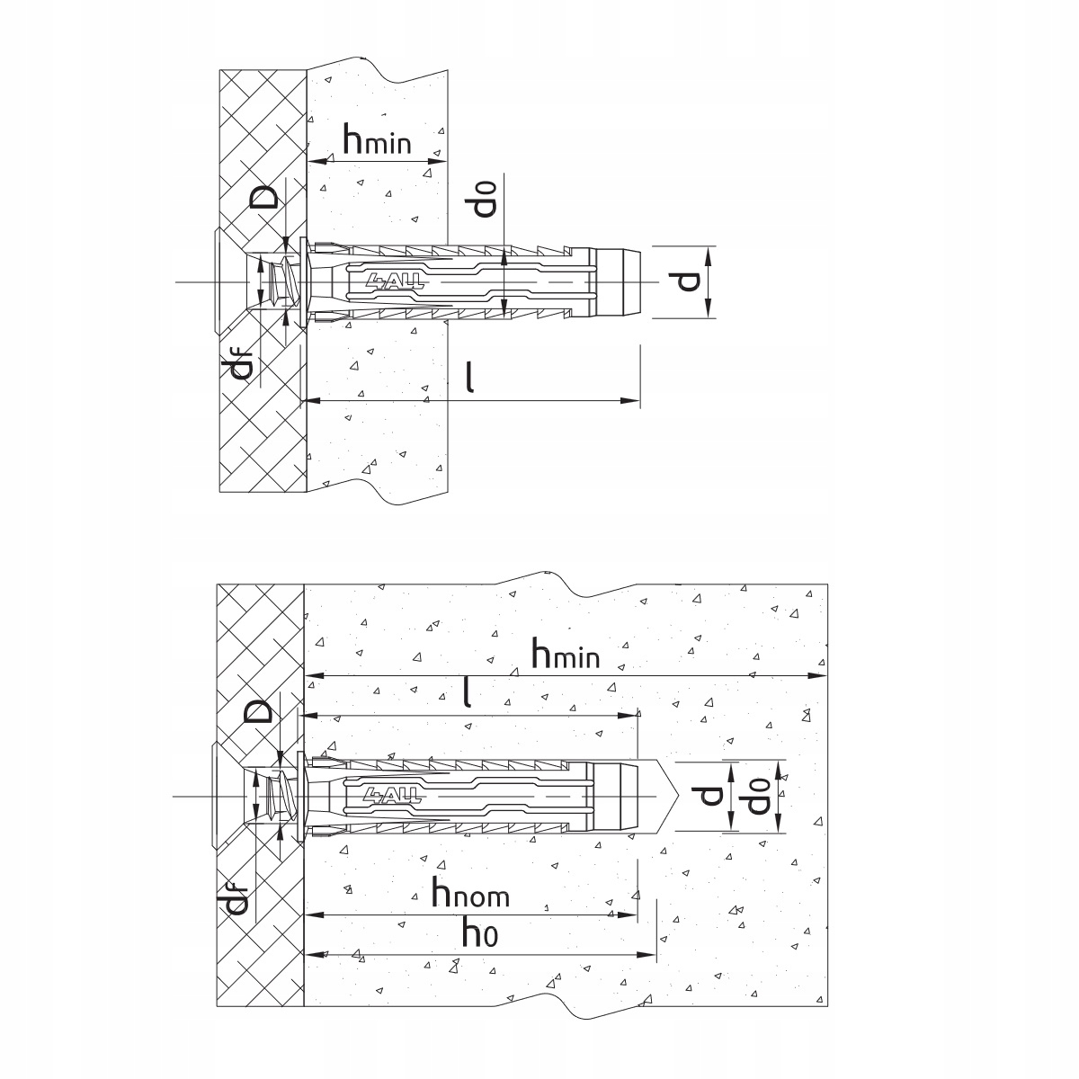 - мін. глибина отвору в підкладці [h0]: 35 мм