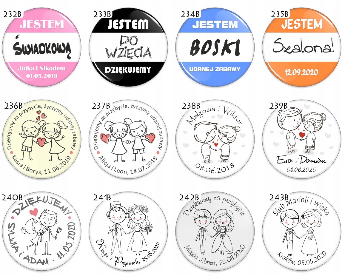 Ви можете самостійно додати будь-який текст на значки (за допомогою перманентного або сухостійного маркера), наприклад, візерунки 232 - 235. Ми також можемо нанести на них тексти, надіслані вами.