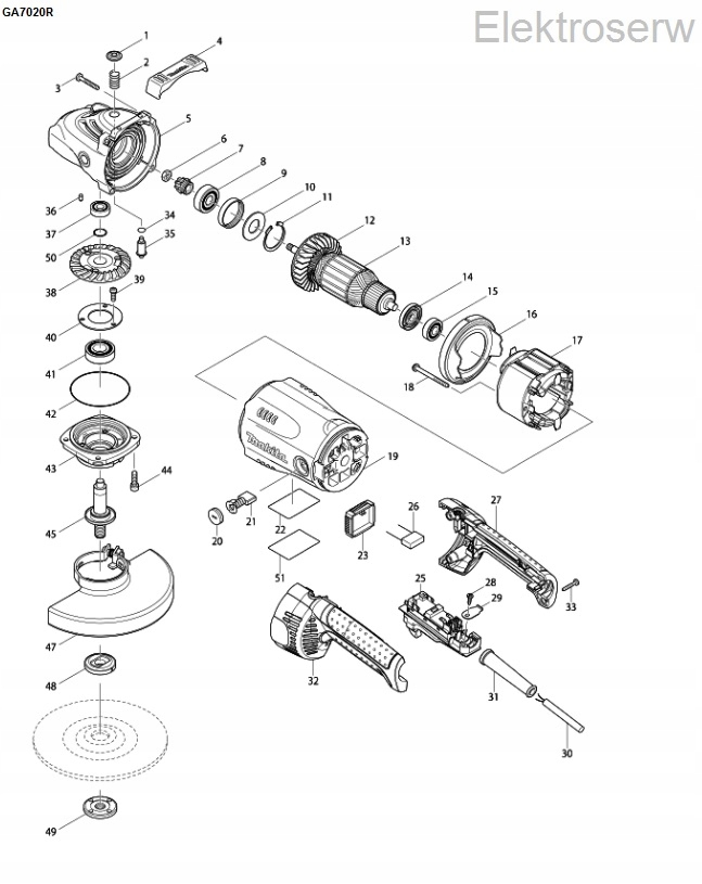 * Шпиндель Makita для кутової шліфувальної машини GA7020, GA9020