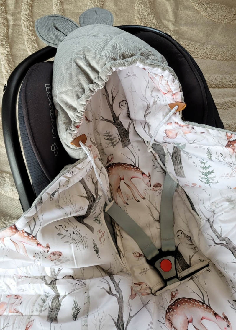Практичний перевізник для автокрісла є обов'язковим при завершенні проряту, особливо восени та зимовий сезон. Завдяки цьому ви полегшите кожну подорож з дитиною. Завдяки цьому вам не доведеться знімати, чи варто розбудити свою дитину щоразу, коли ви хочете поїхати з ним, наприклад, від автомобіля до зберігання. Внутрішня частина, виготовлена з сертифікованого польського 100% преміум -бавовни, в той час як зовнішня сторона приємного і дуже ніжного оксамиту на дотик, п’яна в звичайні алмази. ковдра була пришита з великою увагою до естетики та комфорту використання. Він наповнений сертифікованою, антиаллергічною силіконовою тканиною , яка надає м'якість, легкість і пухнастість. Начинка зшита всередині зовнішніх тканин, завдяки якому вона не рухається і не стратифікується під час використання та промивання. Крім того, пришитна гумка, яка може бути встановлена як елемент кріплення, дозволить їм викопати ковдру з ніг. Крім того, захистить місце від бруду , він буде працювати під час прогулянки в колясці та вдома. Це надзвичайно практично та зручно використовувати. закріплений на липучках , завдяки якому ви можете відповідати ширині ковдри до індивідуальних потреб. Крім того, Регульований капюшон забезпечує тепло та захист від вітру . Ковдра дозволяє забезпечити безпечний і теплий транспорт дитини навіть у самому тілі. призначений для дітей 0-18 місяців