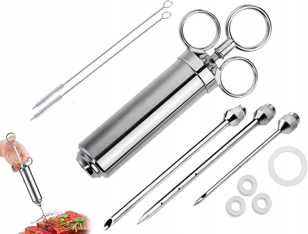 Прості в очищенні: дуже швидке та легке розбирання, тому очищення трохи простіше, цей шприц найвищої якості для введення м'яса також підходить для миття в посудомийній машині. маринади; 3 голки для м'ясного маринаду та велика ємність 60 мл, відповідають усім потребам смаку