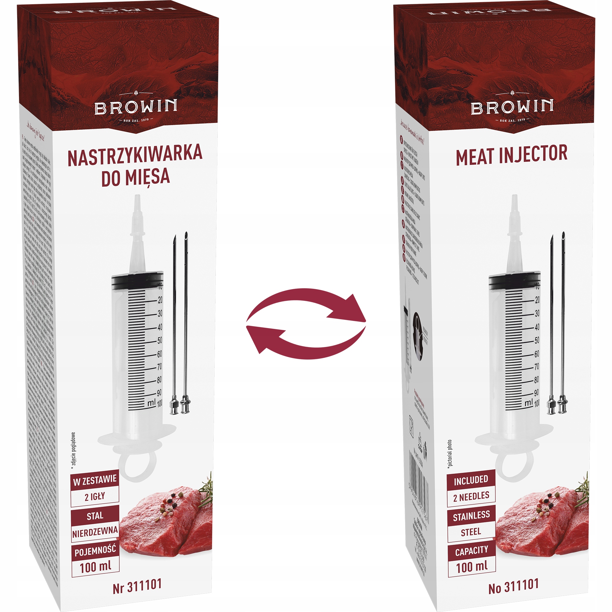 - Професіоналізм у комфорті Вашого дому - шприц на 100 мл з двома дозуючими голками допоможе Вам професійно впорснути м’ясо розсолом, що прискорить процес в’ялення та збереже окости ніжними та свіжими довше!