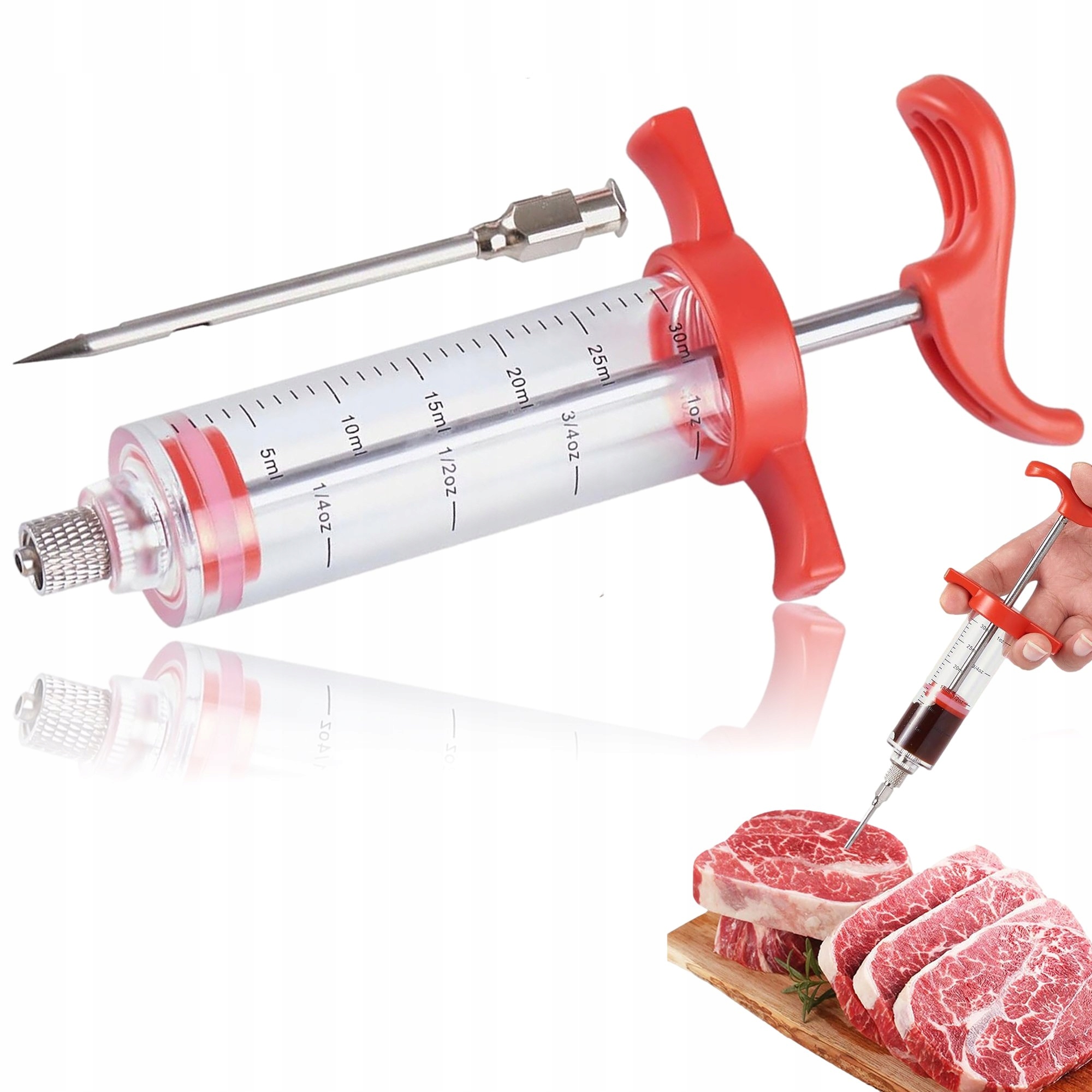 - Дуже простий у використанні. Просто наповніть шприц спеціями/маринадом і введіть вміст у м'ясо за допомогою голки.