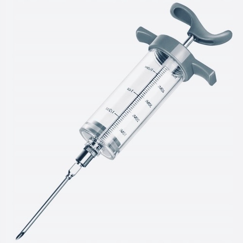 Цей шприц інтуїтивно зрозумілий у використанні, тож будь-хто зможе з ним впоратися. Просто наповніть шприц маринадом, прикріпіть відповідну голку, вставте голку в м’ясо та, натиснувши на поршень шприца, спорожніть його внутрішню частину.