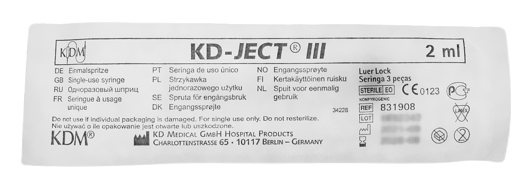 KD-JECT III — це серія стерильних шприців Luer Lock, розроблених для одноразового використання, які забезпечують повний контроль і точність при ін'єкційному введенні ліків. Ці шприци, що складаються з трьох частин — циліндра, поршня та гумового ущільнювача, гарантують безпеку та ефективність під час введення ліків і збору зразків рідин організму.
