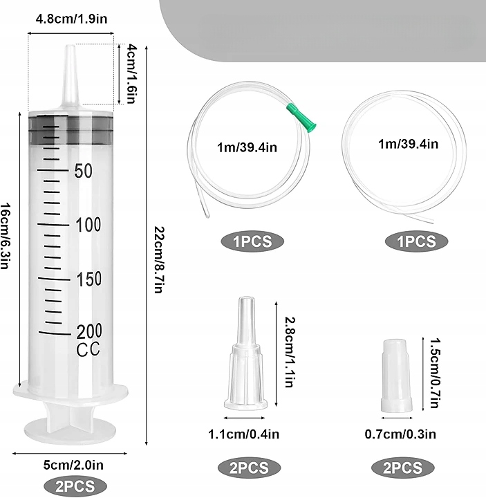 Завдяки довжині до 22 см шприц може вмістити велику кількість рідини, що зменшує потребу в частому наповненні.