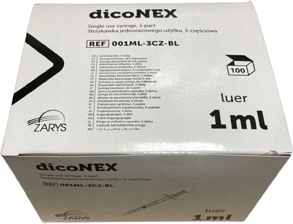 Зарис дікоНЕКС шприц 1 мл 100 шт. REF: 001ML-3CZ-BL