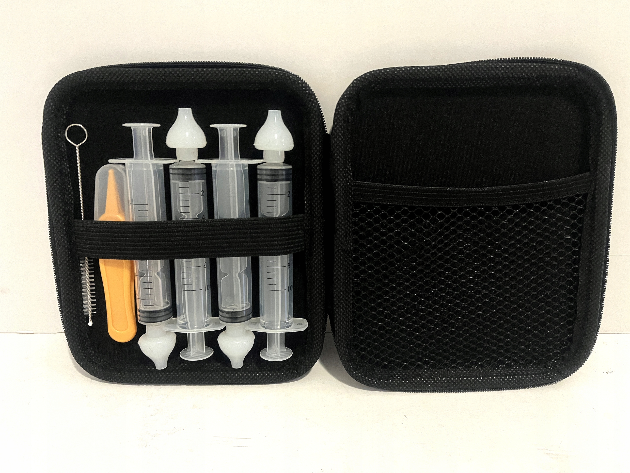 - Упаковка містить 4 шприци для дітей, 1 піпетку та кисть для чищення.