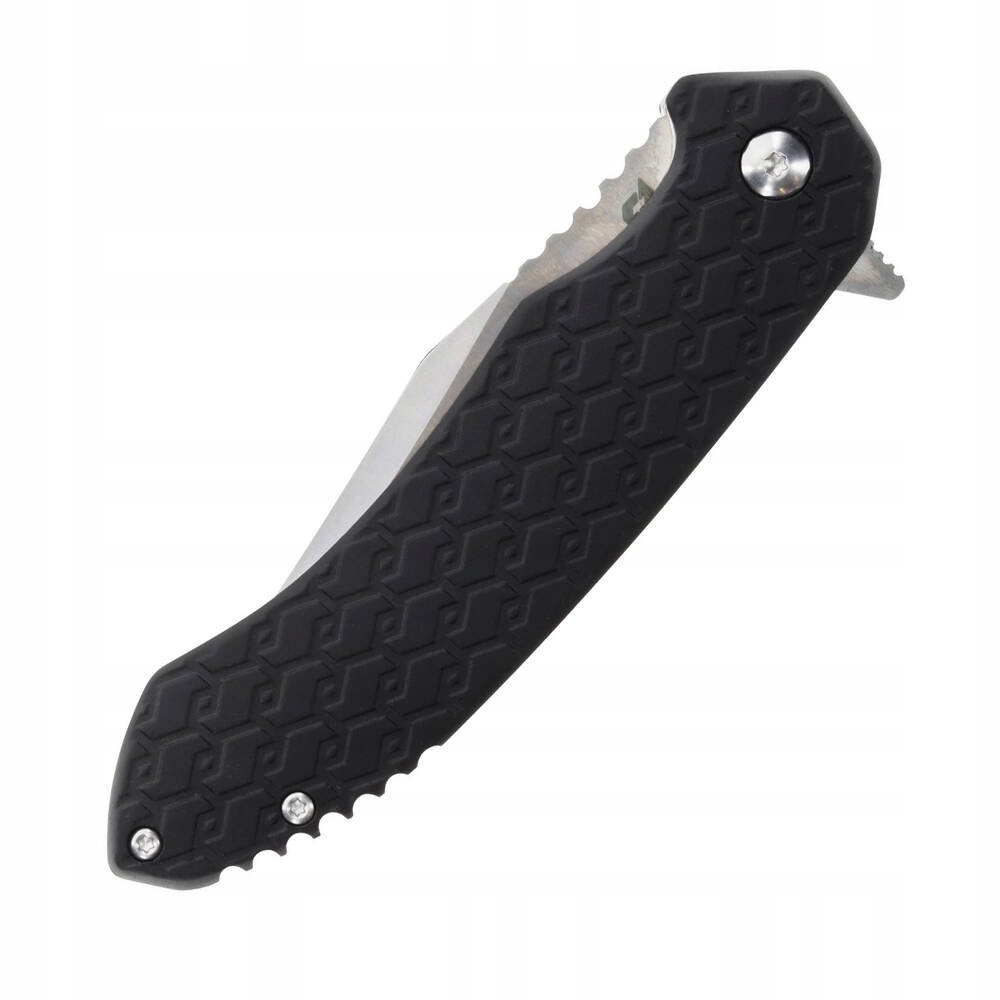 Суцільна ручка, виготовлена з анодованого алюмінію, забезпечує певне зчеплення навіть у вологих умовах, забезпечуючи користувачеві комфорт та безпеку. Крім того, ніж оснащений замком лайнера, який забезпечує додатковий захист під час використання.